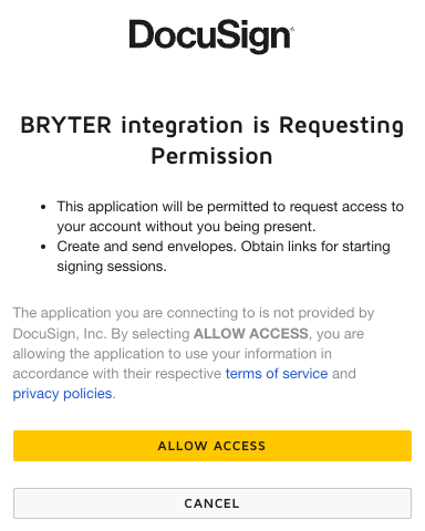 Click on the link, then, click on the yellow Allow Access button.💡 If you have allowed access previously, then the generated link will redirect you directly to bryter.io.