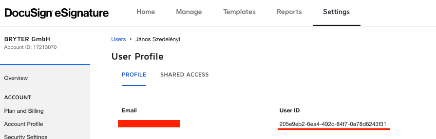 Collect the following details from your DocuSign admin obtained in the previous steps: